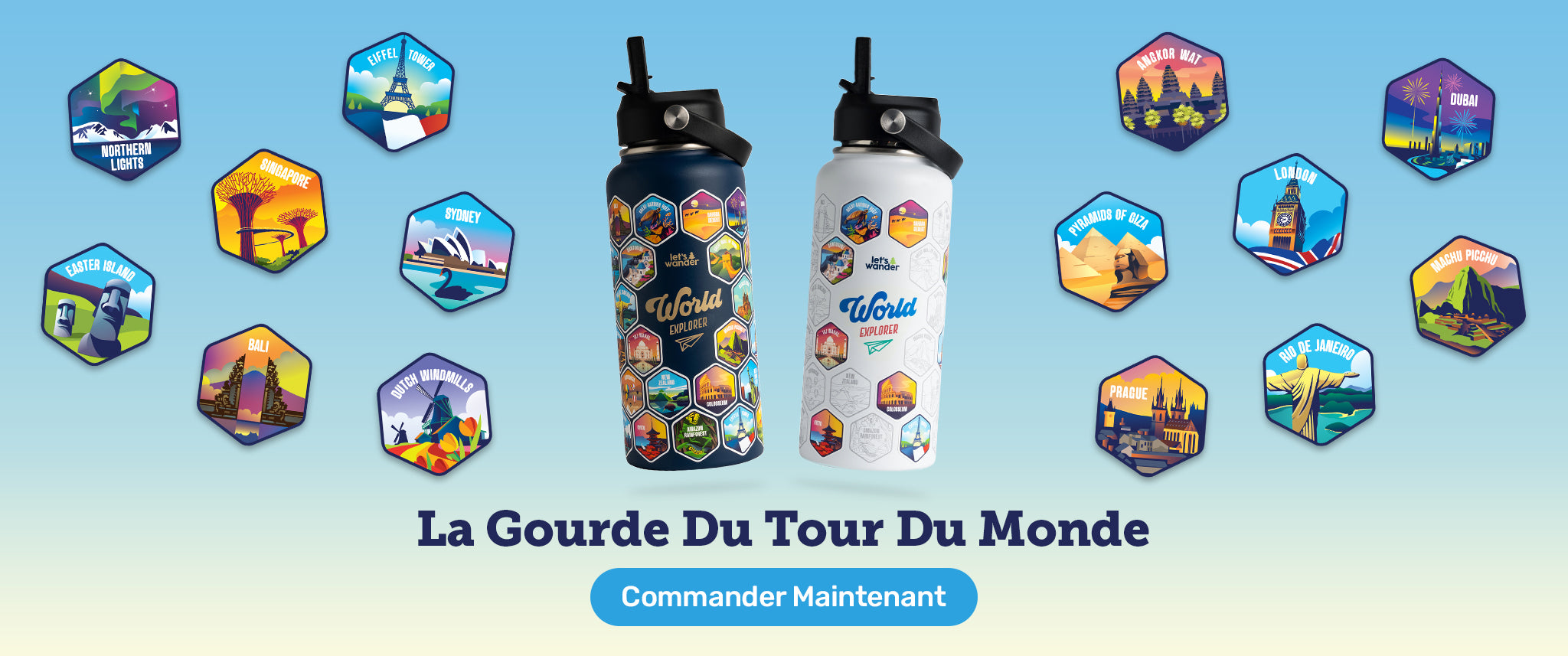 3. Visite les 50 destinations et complète ta collection de stickers sur ta gourde !